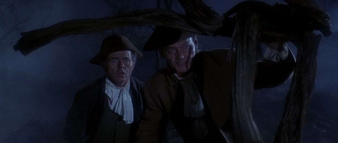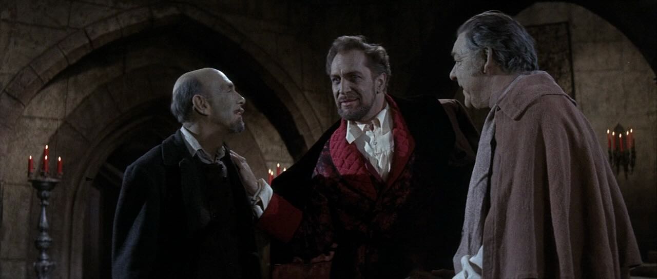 110 years after Vince got burned as a witch, his descendant (also Vince) comes looking for his haunted palace inheritance, along with his useless woman Debra Paget (of Tales of Terror, Lang’s Indian Tomb star). They find Lon “The Wolf Man” Chaney claiming to be the caretaker, but he’s standing in the dark and has cleared out none of the cobwebs.