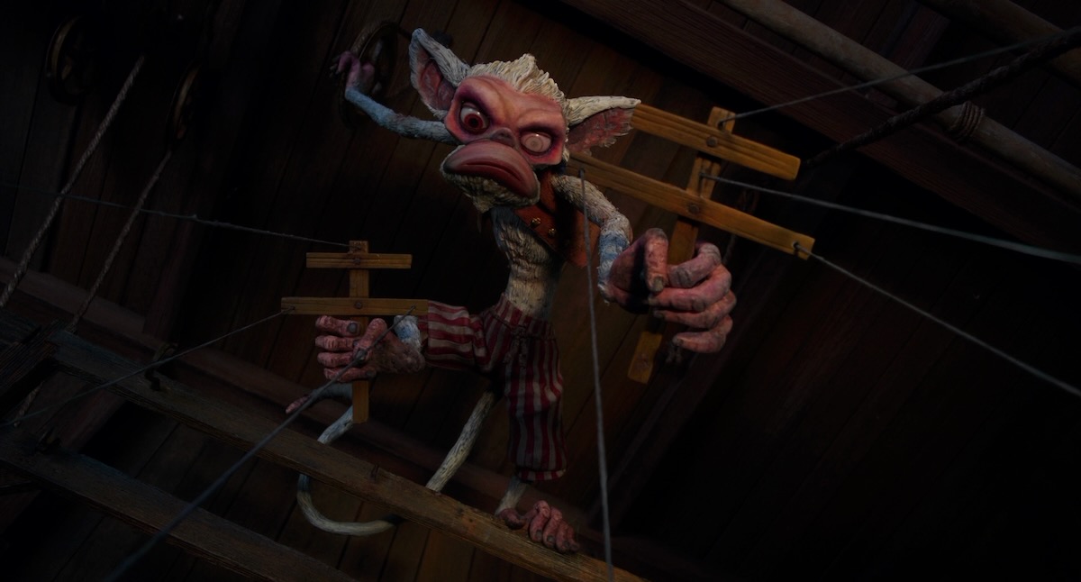 After Don’t Look Now and The Church, I’m on edge when there’s an artist on scaffolding in a movie. Pinocchio (the puppet) is a real horror, created in a drunken rage. Fascists insist that P go to school, but carnie Christoph Waltz wants to kidnap him into the circus instead.