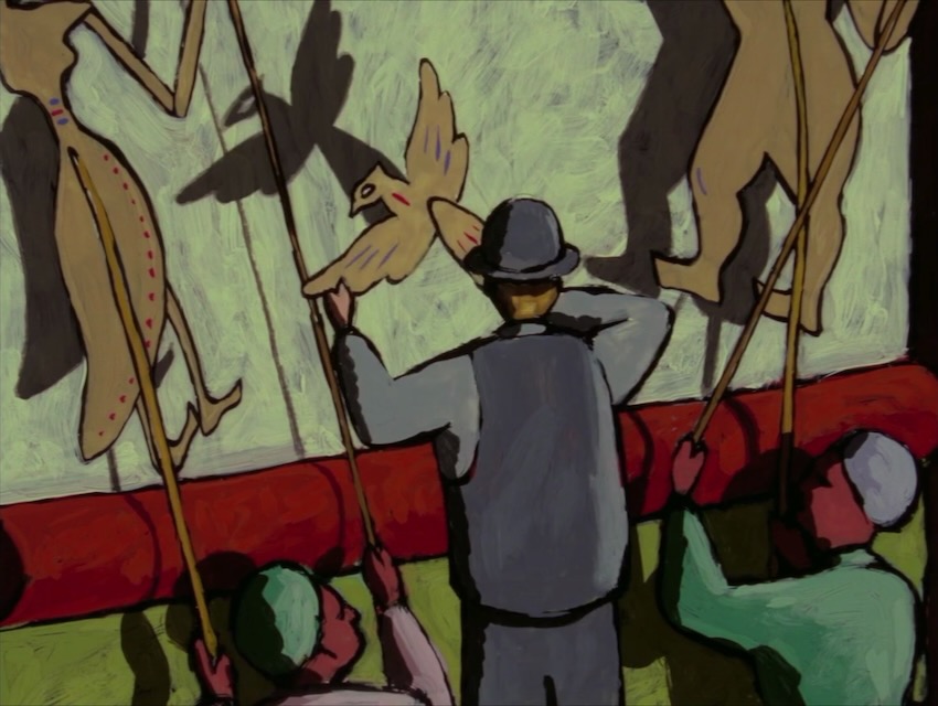 The kind of paint-meets-clay blending that I love in The Wolf House. In standard-def I can’t even tell the difference between the 2D and 3D layers sometimes, or maybe it’s all 2D, but it’s wonderful. Feels freeform, making up new patterns according to whim, but returning to some (sexual/creature/religious) themes, like McLaren meets Bickford. I was gonna say the music is sometimes overwhelming, but I got caught up in the visuals and forgot that it’s a silent film and I’d hit play on Matmos A Chance to Cut.