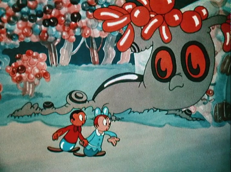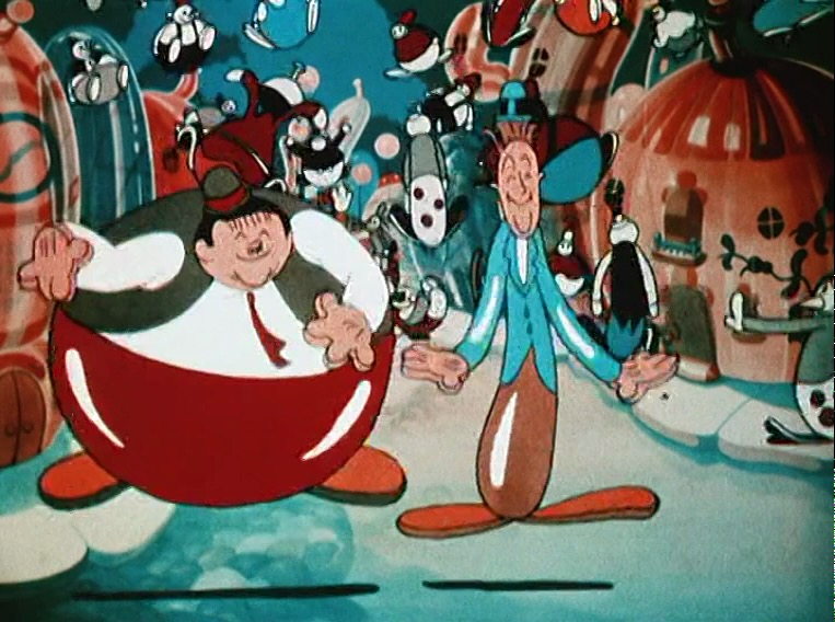 No spoken words in the Mickey, this one’s got singing. In a world where everyone/thing is made out of balloons except for the dreaded Pincushion Man, who threatens to pop our dim heroes who wander into the woods. He follows them into town and goes on a mass murder frenzy until the armed forces fight back with tree sap and knock him off the edge of the world. The young couple gets away with bringing grave peril into town since the only witness who could’ve fingered them was killed.