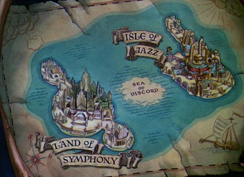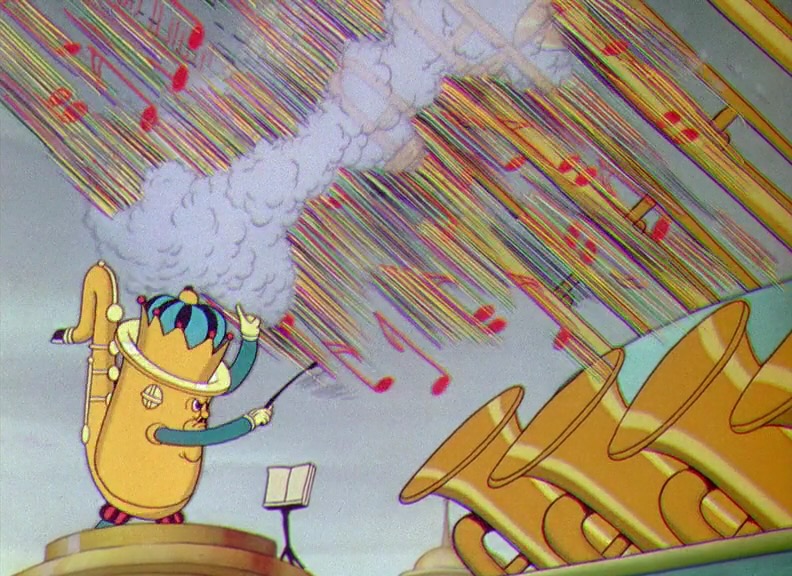 Princess Violin of Symphony island and Prince Alto Sax of Jazz island have a tryst which starts a war, until the opposing sides chill out and hold a wedding instead. Great character design in this one, with the voice of each character “spoken” by the instrument it represents.