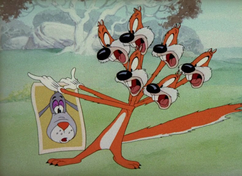 Having co-created Bugs, Daffy and Porky, Tex fell out with the Looney producers and moved to MGM, where he appears to have created new versions of Bugs/Daffy (squirrel) and Elmer/Buzzard (dog) to torment with even wilder gags. Full of fun meta jokes, far beyond Screwy talking to the audience – the action hitches when a turntable playing the music score skips, he pulls back the screen to see what happens in the next scene, he interrupts the iris-out to extend the action. Has the same ending as The Palm Beach Story.