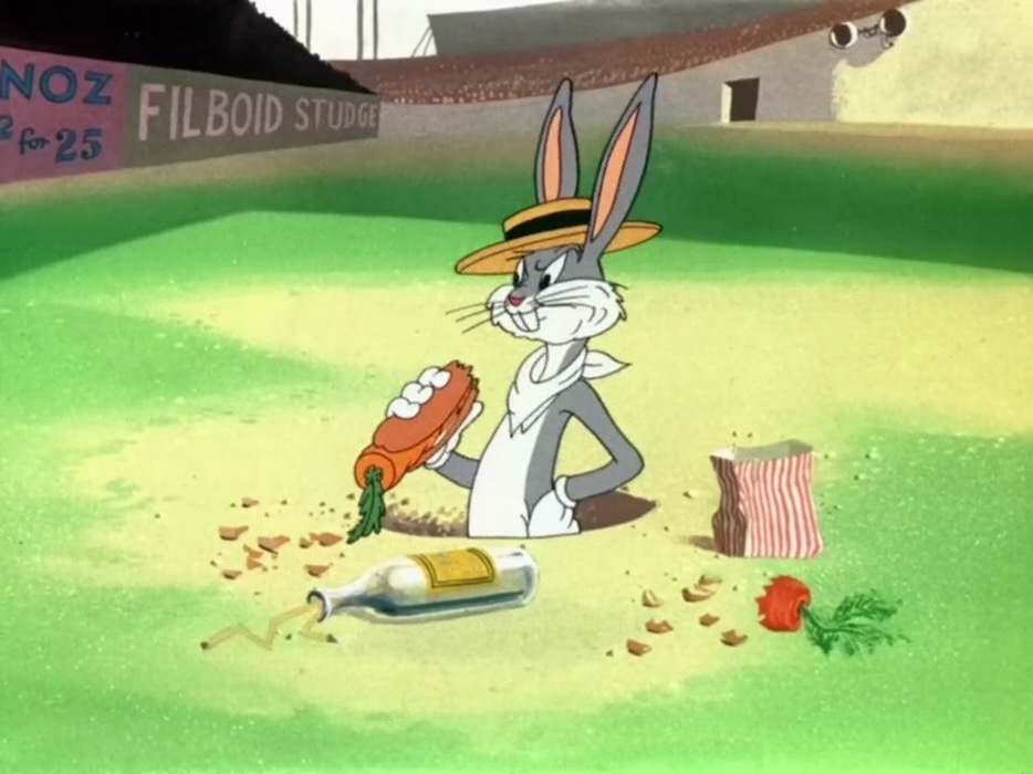 Bugs in invincible trickster mode plays every position at once, singlehandedly takes on an entire baseball team – some good gags and frantic energy.