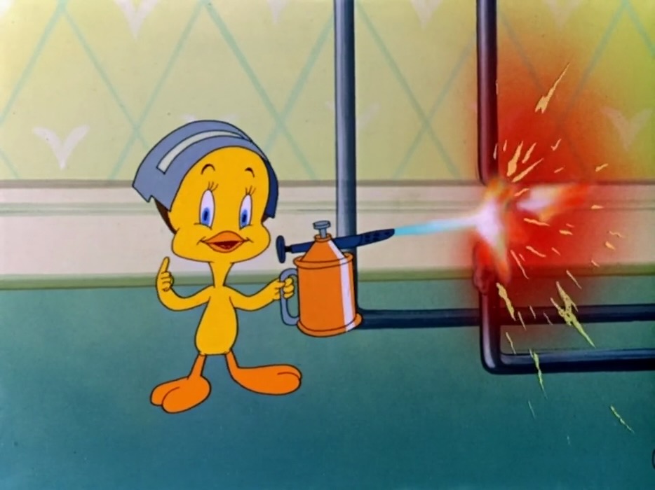 Another Clampett castoff, redesigned by Freleng. Sylvester (here named Thomas) is chasing an bird outside in the snow, which is then adopted by the cat’s owner. Dig the rube goldberg contraption. Ends with the bird just pummeling the cat with a shovel. The first Warner short to win an oscar (vs. a George Pal puppetoon).
