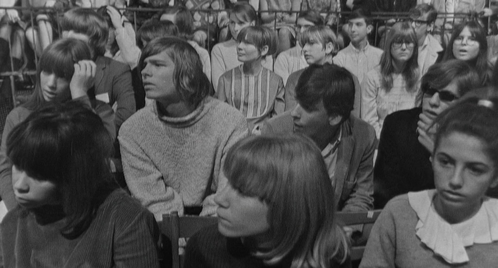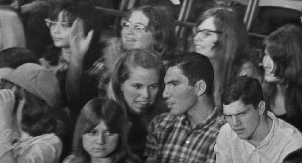 “Rock and roll is not jazz.” Argument within a college(?) jazz club about whether only Black people could have created jazz, the white boys arguing that there are plenty of white players so race has nothing to do with it. Narrator Alex explains how music works (repeating chorus, changes/harmonies) and how jazz has evolved, culminating in the hottest group of today, the Sun Ra Arkestra. While the kids are stuck arguing in their musicless bland room, our camera hits the streets and the clubs seeking examples for Alex’s explanations. After a savage scene comparing Black life (pool game) to white life (poodle getting a haircut), eventually there’s a short debate over whether Americans have souls, concluding ambivalently: “America’s soul is an empty void.” For a half-hour movie that begins looking like a MST3K educational short, this sure takes some wild turns.