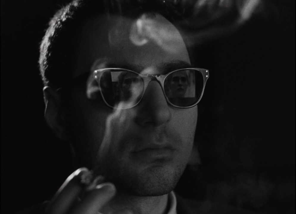 Stereo sound hard-panning left and right, songs cutting in and out, incomplete subtitles, footage warped and effected, recolored, switching to the wrong aspect ratios on purpose, speed-adjusted and frame-by-framed, interlacing, watermarks. He’s taking the “I invented the jump-cut” thing a little far, with an entire movie of technical errors.