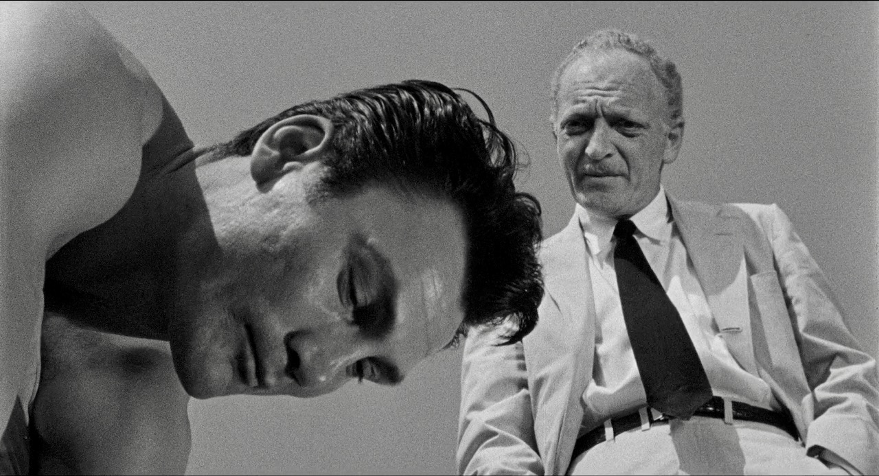 Welles fave Everett Sloane as the agent, with a naked Palance: